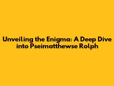 Unveiling The Enigma: A Deep Dive Into Pseimatthewse Rolph